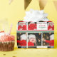 This cute, modern Merry Christmas wrapping paper features a classy layout of 4 family photos on a white background with pretty red and green typography and festive stripes. This beautiful kids photo holiday gift wrap features your own child's photograph collage surrounding your message and family name.