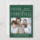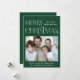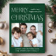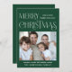 Elegant green holiday card featuring "Merry Christmas" in stylish white vintage typography, "happy new year" and a seasonal greeting in white modern typography, your photo and your name.