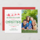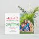 This design features a Santa Claus with reindeer and sleigh. The text "We wish you a very merry Christmas and a happy New Year" is written in modern popular red and green typography with the option to add your family name and a family photograph. Perfect for winter or summer Christmas.