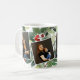 A rustic Christmas mug with holiday florals and berries and 4 of your favourite holiday photos is perfect for celebrating the holidays.