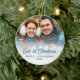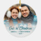 Celebrate your first Christmas together with this personalised keepsake ornament. The turquoise text reads "Our 1st Christmas" in stylish retro handwriting script. Replace the sample image with your favourite photo, and add your names and the year. A white gradient filter helps make the text pop.