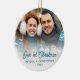 Merry Christmas Photo Newlywed Turquoise Script Ceramic Ornament