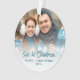 Celebrate your first Christmas together with this personalised keepsake ornament. The turquoise text reads "Our 1st Christmas" in stylish retro handwriting script. Replace the sample image with your favourite photo, and add your names and the year. A white gradient filter helps make the text pop.