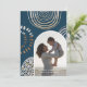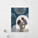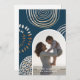 This beautiful Christmas card features a vibrant blue print with circular geometric shapes and a modern arch shaped photo. The back features an editable personal message on a white background.