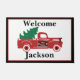 vintage pickup and tree, (*Note the image appears pink but is not printed that way) Edit greeting and name