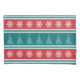 Merry Christmas illustration with Christmas tree and snowflakes decoration on red, white, blue and turquoise striped background