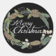 Merry Christmas Pine Cones and Greenery holiday stickers feature a black background with a wreath of greenery and pine cones, and white typography text that reads Merry Christmas! This pretty holiday sticker matches our Merry Christmas Pine Cones and Greenery holiday photo cards, address labels, and postage stamps.