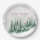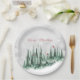 Merry Christmas Pine Tree Forest Cardinal Birds Paper Plate
