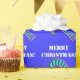 Candy Cane design. Pretty bright blue wrapping paper roll of a light blue candy cane with look of 3D pink stripes and outline. Text saying, Merry Christmas in a white font colour. Keep the saying, or PERSONALIZE by inserting YOUR own message. Candy Cane has the look of a baked cookie. Click CUSTOMIZE IT to change background blue colour, if you wish. Original Artwork © TamiraZDesigns.