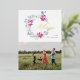 Merry Christmas Pink Blue Watercolor Flower Wreath Foil Holiday Card