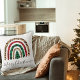 Merry Christmas Plaid and Leopard Print Rainbow Cushion