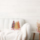 Add cosy holiday charm to your home with this Merry Christmas plaid trees throw pillow. The design features three festive evergreen trees in classic red, green, and gold plaid patterns, with “Merry Christmas” scripted beneath in cheerful red. The back is solid red, adding a bold pop of seasonal colour. Perfect for decorating your living room, guest room, or gifting to friends and family during the holidays.