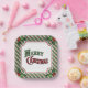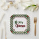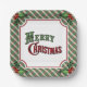 A beautiful Merry Christmas paper plate featuring a vintage-style "Merry Christmas" and a Christmas plaid border with holly accents.