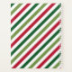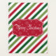 Merry Christmas illustration with text and snowflakes design on red, white and green striped background