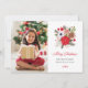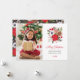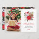 Merry Christmas Poinsettia Floral Photo Holiday Card