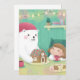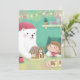 A cute illustration of a polar bear and a child at a table with a gingerbread house