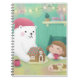 A cute illustration of a polar bear and a child at a table with a gingerbread house