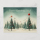 Merry Christmas postcard with Christmas trees, minimalist, ornaments and winter background whimsical art. Personalise it using 'Personalise this template' or using the Edit feature.