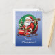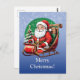 A Christmas card that instantly brings the holiday spirit to your hands. There's a joyful Santa Claus, all smiles, riding his sleigh through a snowy night, and a cheerful "Merry Christmas!" greeting you in a festive font. The sleigh is decked out in classic Christmas colors – vibrant reds, greens, and a touch of gold. It's the perfect card to help you enjoy the holiday season and send a smile to your beloved ones!