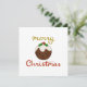 'Merry Christmas' in faux gold colour and red script with illustration of a Christmas pudding with holly centre.