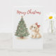 Merry Christmas Puppy Card Fluffy Dog with Tree