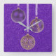 Merry Christmas Purple Glitter Baubles Elegant Square Wall Clock