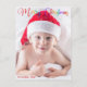 Beautiful rainbow Merry Christmas photo postcard with beautiful rainbow cursive typography over your baby photograph. This modern holiday newborn photograph postcard features gorgeous colourful script overlay and your family's name in red over the full bleed Christmas picture.