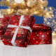 Merry Christmas Red and Gold Christmas Tree Christmas wrapping paper shows a graphic swirled gold Christmas tree, with red lights and ornaments and gold and white stars. This beautiful colourful Christmas paper makes for a WOW presentation--a gift that can't be missed.