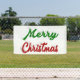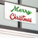 Banner with Merry Christmas in 3D green and red text. Available in several sizes for indoor and outdoor.
