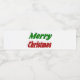 Water bottle label with Merry Christmas in 3D green and red text. Available for several bottle styles and sizes.