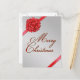 Red ribbon with bow on a light grey/white background with "Merry Christmas" letters in red with gold border.