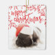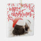 Adorable square Christmas ornament with an adorable photo of a bulldog puppy wearing a santa hat. Keep the photo or exchange to one of your own pet!