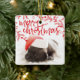 Merry Christmas Red Branches Custom Pet Photo Ceramic Ornament