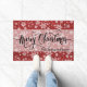 Merry Christmas Red Burlap Snowflake Pattern Doormat