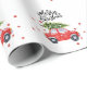 Merry Christmas red car with Christmas tree Wrapping Paper