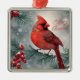 Merry Christmas Red Cardinal and Berries Metal Ornament