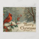 Merry Christmas Red Cardinal and Winter Berries Holiday Postcard