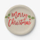 Merry Christmas Red Faux Foil Modern Script Kraft Paper Plate