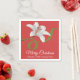 Add bold holiday elegance to your gatherings with this Merry Christmas red cocktail napkin, featuring a soft white lily (alstroemeria-style) flower outlined in red and accented with a flowing green scroll. The crisp white script “Merry Christmas” pops beautifully against the vibrant red background, creating a festive, modern look.