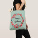 Merry Christmas Red Floral Watercolor Wreath Tote Bag