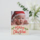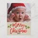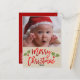 Merry Christmas Red Foil Modern Script Photo Holiday Postcard