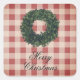 “Merry Christmas” Red Gingham Plaid Square Sticker
