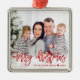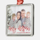 Merry Christmas Red Glitter Script Custom Photo Metal Ornament