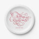 Merry Christmas Red Glitter Script Typography Paper Plate