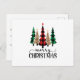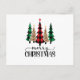 Merry Christmas Red Green and Black Plaid Trees Postcard