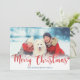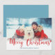 Merry Christmas Red Modern Script Photo Blue Holiday Card