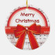 Merry Christmas red ribbon notes ornament. Text can be customised and photo can be added inside.