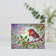 Merry Christmas Red Robin and Berries Holiday Postcard
