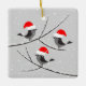 Merry Christmas Red Santa Hat Birds Ceramic Ornament