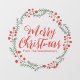 Merry Christmas red script with a rustic leafy dark green and red wreath frame border cheerful happy cute Window Cling.